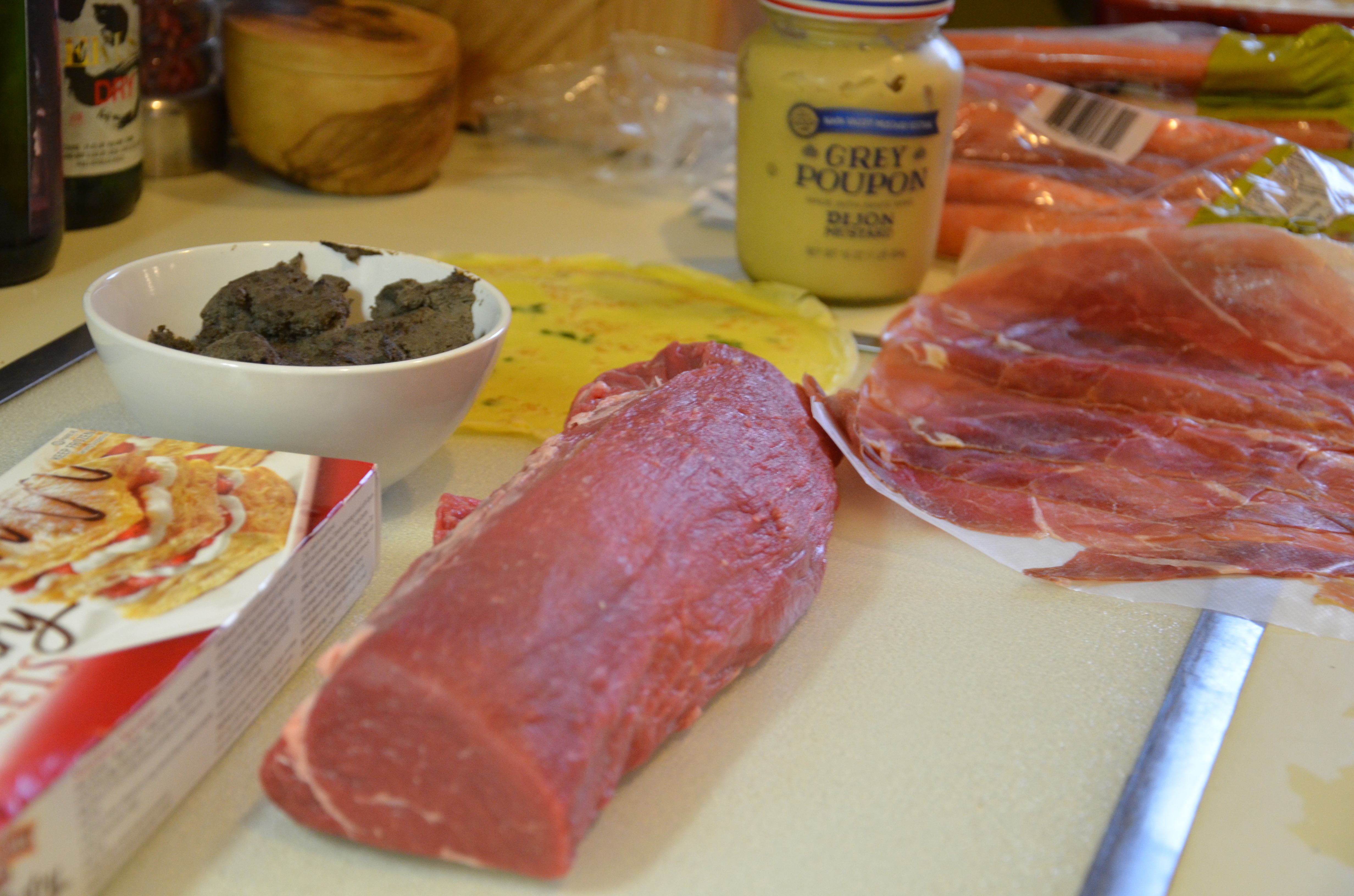 Our dear friends, Lynne and Laurence, visited me and AJ this weekend from Vermont. Lynne is a theatre professor and author at the University of Vermont and Laurence is an accomplished CIA trained French Chef. Because nothing says, “We think you’re special” louder than Gordon’s Beef Wellington, I decided to put Chef Jeff’s method to the test and thaw out the puff pastry. Until two months ago, I had heard of Beef Wellington, but had basically no clue what was really entailed.