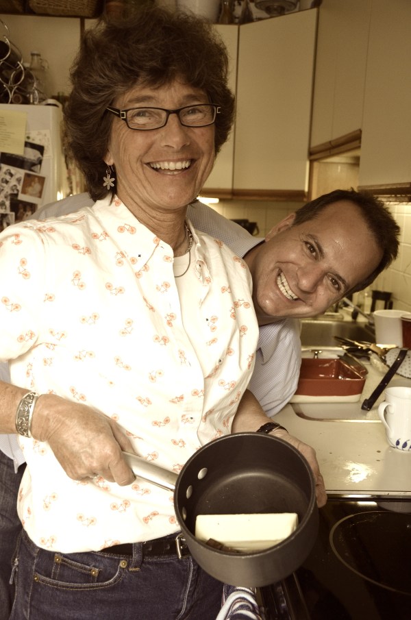 My folks were out here this past week to celebrate the MasterChef premiere with AJ and me.  I didn’t waste a minute asking them to whip up a few of the dishes that remind me of my childhood.  I have lived over 3,000 miles away from them for over 10 years, so recipes are how I have learned to “visit” them in between our semi-annual get-togethers.  But what a treat to have the two of them so close and to capture the subtle nuances that make a small handful of recipes so sacred to me!  This brownie recipe is truly fantastic.  Yes…I may be biased…but these are amazing.  The ingredients are easy to keep on hand at all times and it comes together in minutes- perfect for “comfort dessert” after an I-just-need-some-chocolate kind of day or an impressive treat for pop-in guests.  Virginia Belle…made with love.