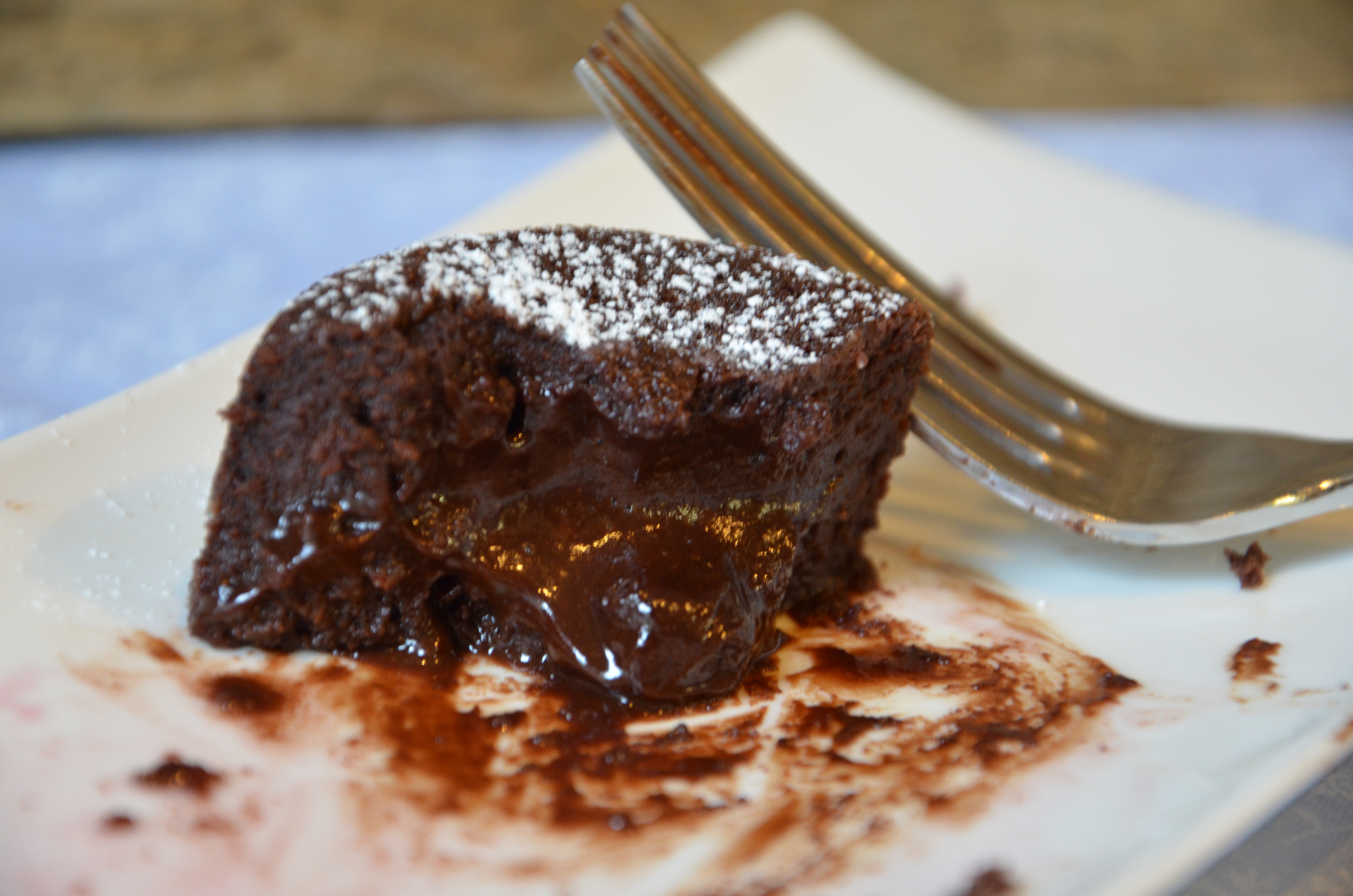 What a beatiful choocolate molten lava cake. I want to taste that cake.