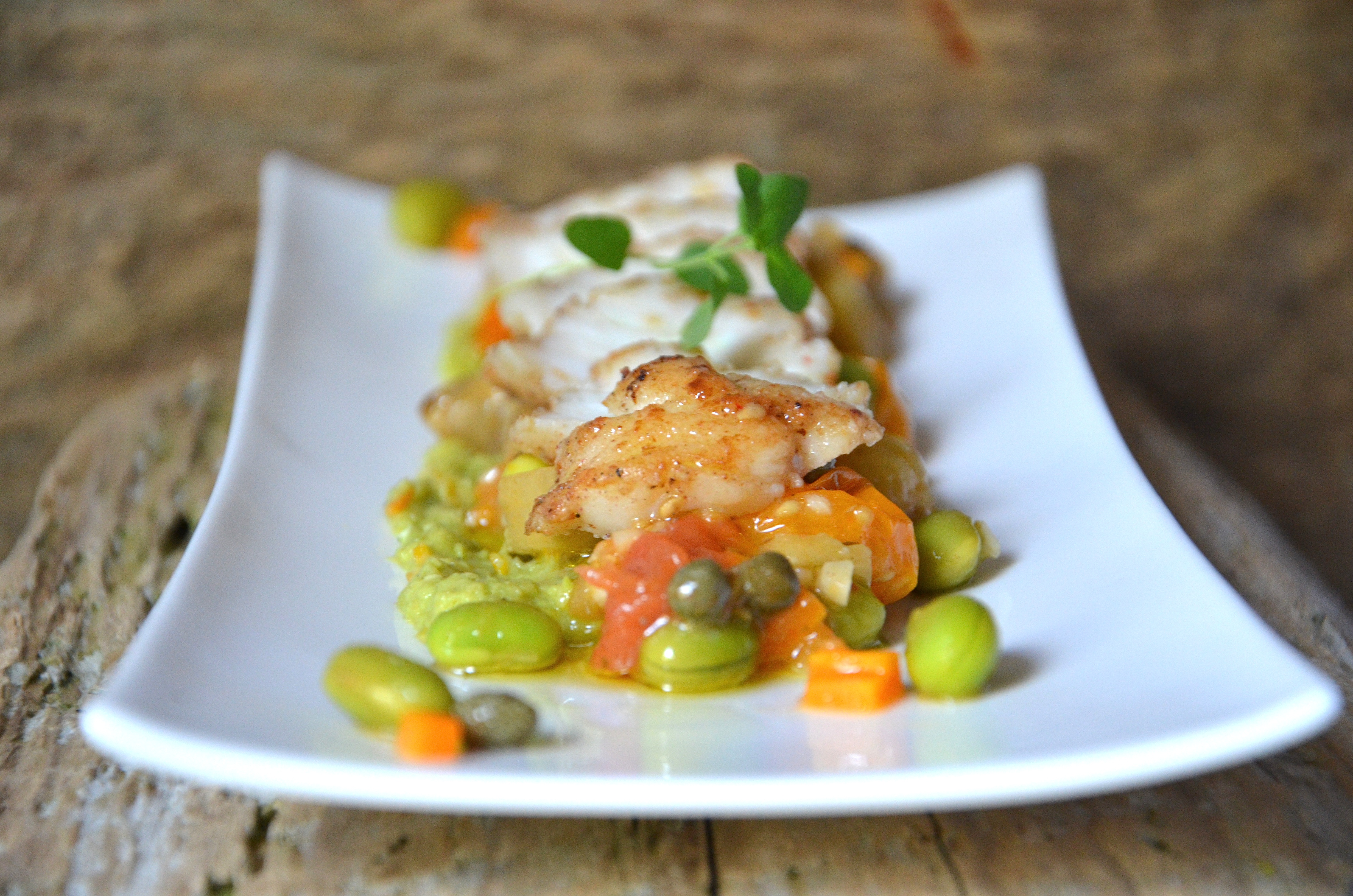 Pan Roasted Monkfish with Siena Farms Summer Vegetables