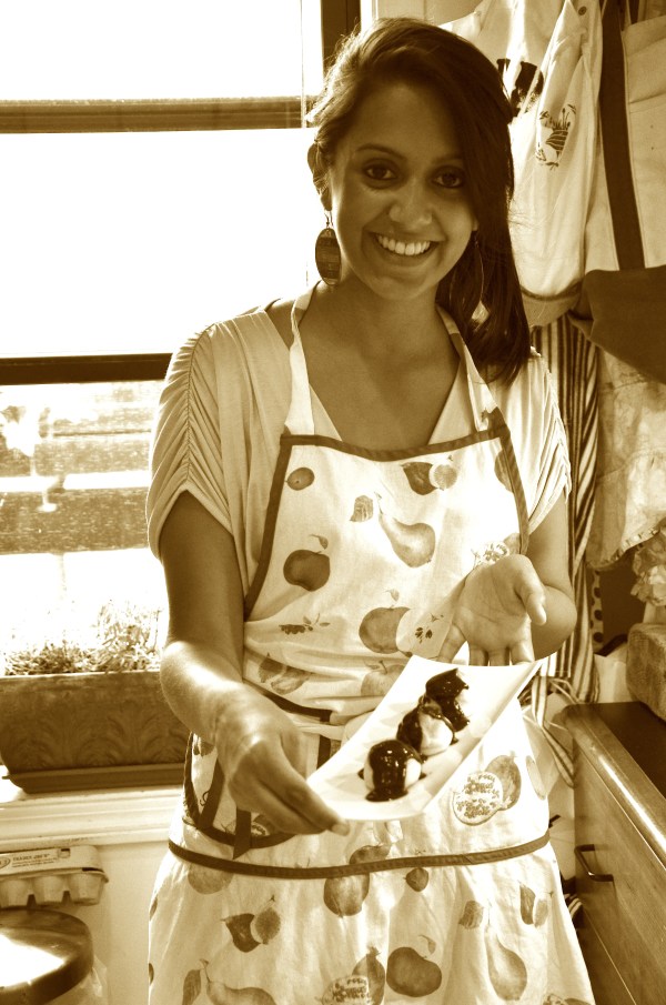 An afternoon of tasty bites, decadent sweets, a splash of vino and some girl talk? I’m there! I recently had the pleasure of hosting a private cooking lesson in our home.  If you’ve seen our kitchen, you know that it’s cozy.  It cranks and bakes and refrigerates proudly chanting Gordon’s quote, “the best food comes from the smallest kitchens.”  That’s us, happening now.  Shalini, a recent Harvard Grad, contacted me a couple weeks ago.  She was gearing up for a job in Paris and wanted some new tricks to take across the pond.  We designed a 3 hour lesson that included some  everyday favorites like Fig and Prosciutto Pizza with the MasterChef 35-minute dough and a chocolate genache that is fool proof and mouth watering.  We also took it up a notch with  some techniques I learned in LA from some of the worlds top Pastry Chefs like Pate a Choux Pastry, Mascarpone Sabayon, Piping and Glass Candy.  Top that off with a bottle of chilled Sancerre and some take home menus and we both agreed, it was time well spent.