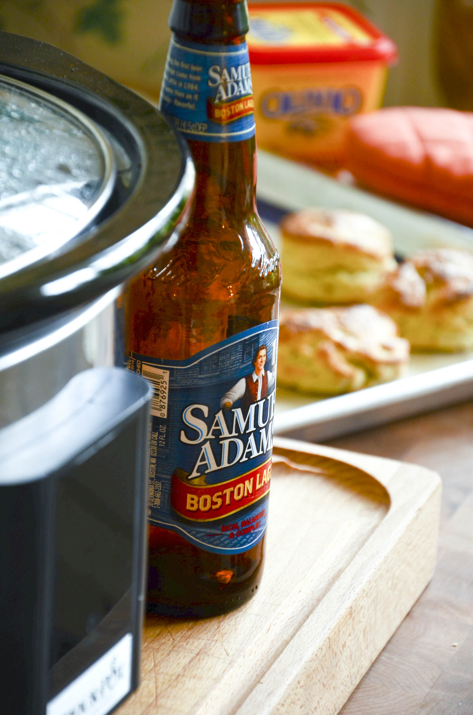 Winter is here and that means it is time to cook up some comfort! With a polar vortex looming around New England this week, pulled pork and herby biscuits are calling our name.  This slow cooked, bone-in pork butt is loaded with flavor thanks to a tasty rub and a bottle of our good friend Sam Adams.  Did I mention, prep time is under 5 minutes???  Let your slow cooker do the finessing for the next 8 hours and enjoy the benefits.  Our Herby Olivio Biscuits are beautifully flaky and a delicious side to soak in every last bite of snow storm comfort.  This dish will be sure to leave you warm from the inside out:)